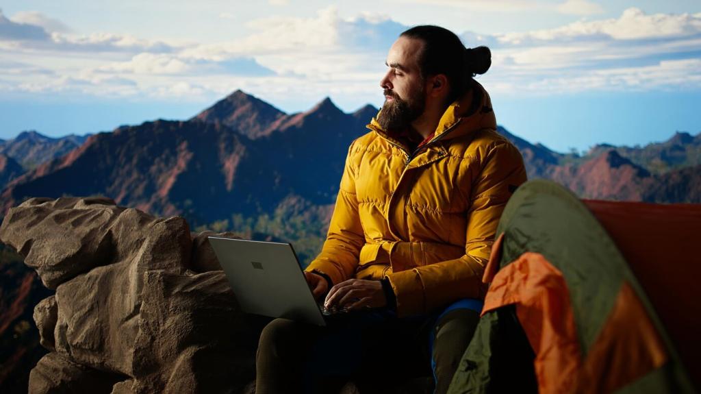 Ein klappbarer Laptopständer, leichtes Bluetooth‑Keyboard und Maus schützen Nacken und Handgelenke. Pomodoro‑Sprints mit Stretch‑Pausen wirken Wunder. In Medellín verschwanden meine Unterarmbeschwerden, nachdem ich die Höhe konsequent anpasste. Ergänze eine kompakte Handcreme und kurze Mobilisationsübungen für lange Reisetage.
